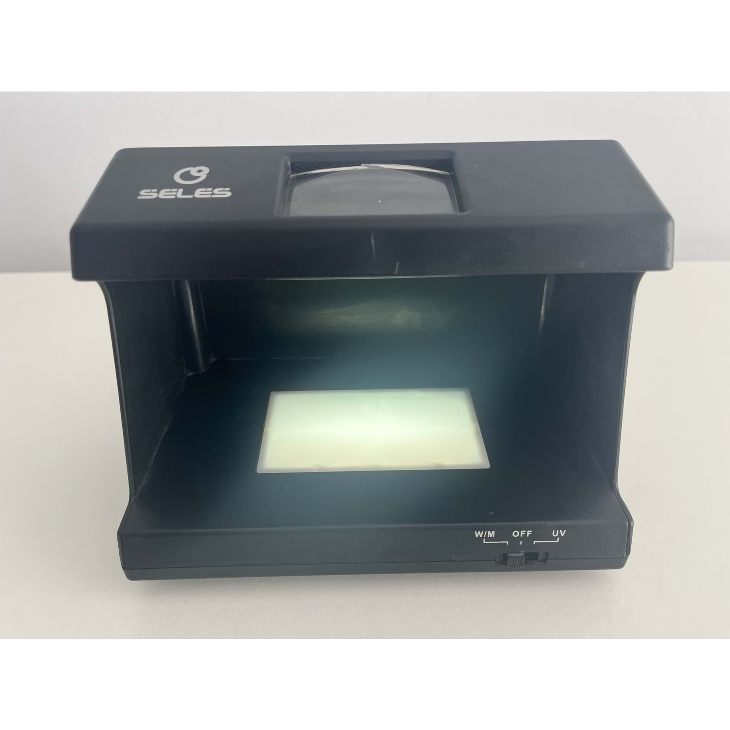 SELES sahte para tespit cihazi temiz ve calisir durumdadir. UV isik ile banknot kontrolu yaparak sahte para tespitinde yardimci olur. Isletmeler icin ideal, kullanimi kolay ve pratiktir.